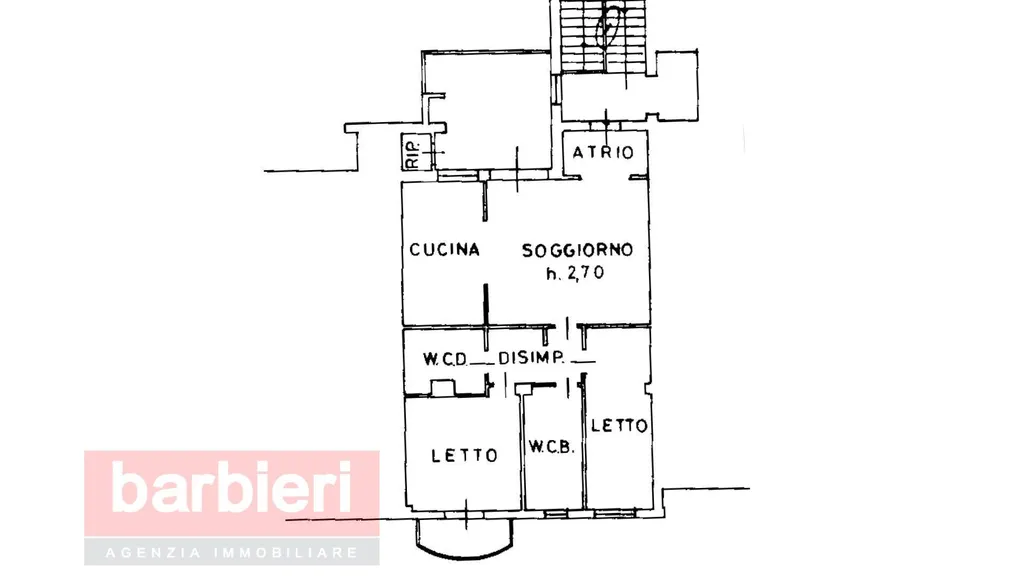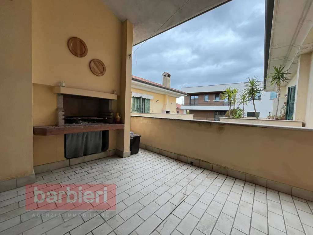 L'appartamento è composto da soggiorno con affaccio sul ampio terrazzo loggiato, cucina abitabile una camera matrimoniale con affaccio su balcone, una camera doppia e due bagni.
