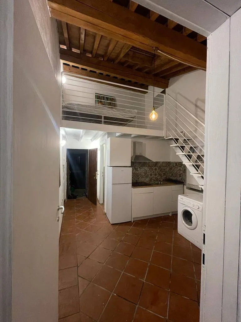 Sito al secondo e ultimo piano. Arredato e composto da ingresso, cucina con lavatrice e microonde su zona giorno con mini balconcino su via Mayr, zona notte in soppalco, studio con divano letto a una piazza e mezza, bagno con box doccia.
