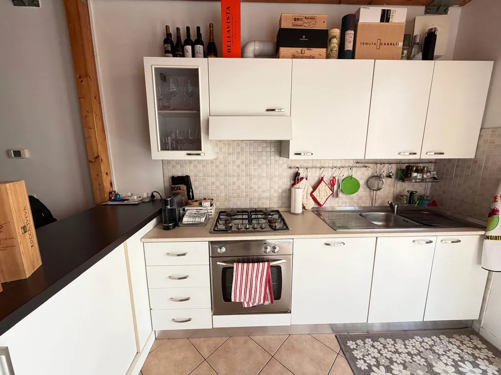 L'appartamento è composto da: ingresso, luminoso soggiorno con angolo cottura a penisola, balcone, antibagno attrezzato con lavatrice, bagno finestrato con box doccia.