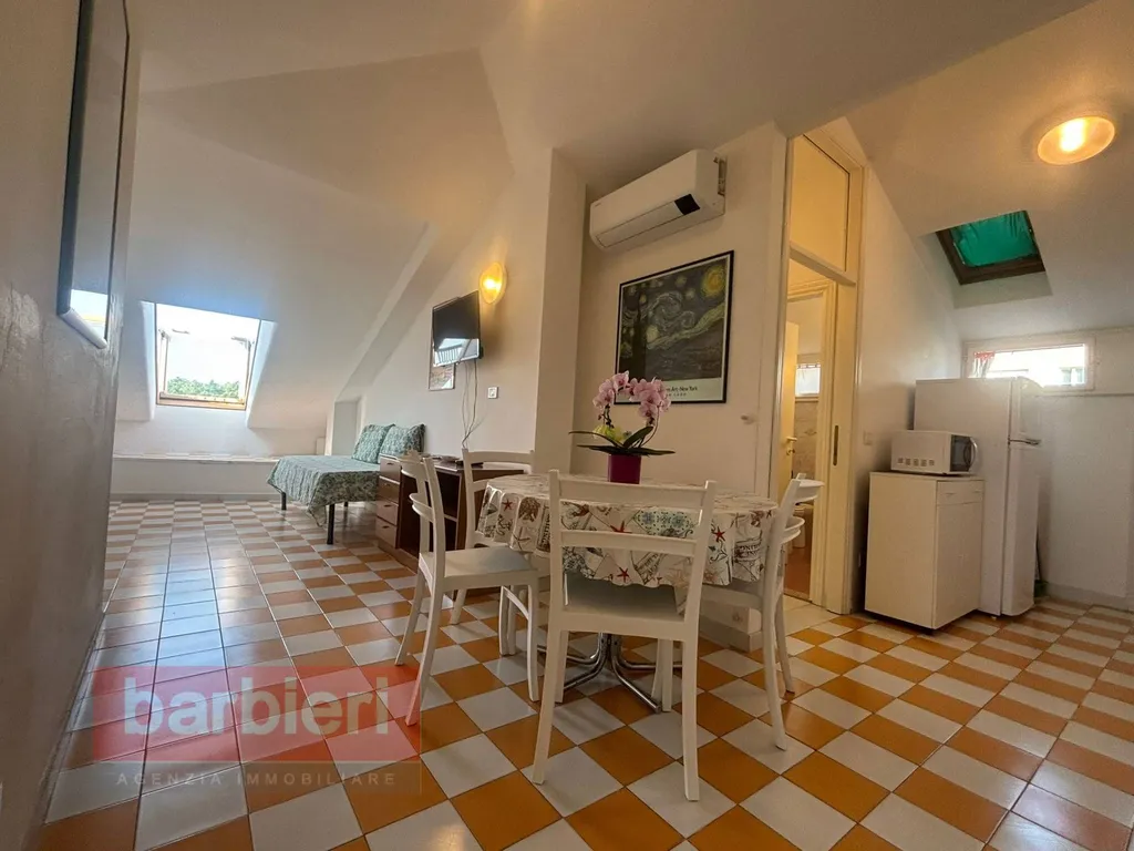 Rif. 674 - Vendiamo a Milano Marittima, vicino al mare, un bilocale mansardato all'ultimo piano di una palazzina dotata di ascensore. L'appartamento è composto da soggiorno con angolo cottura, bagno finestrato e spaziosa camera matrimoniale. L'immobile si presenta in buone condizioni è dotato aria condizionata, viene venduto parzialmente arredato. Possibilità di posteggiare un auto all'interno della corte condominiale. L'invidiabile posizione e il prezzo lo rendono un'occasione unica.
