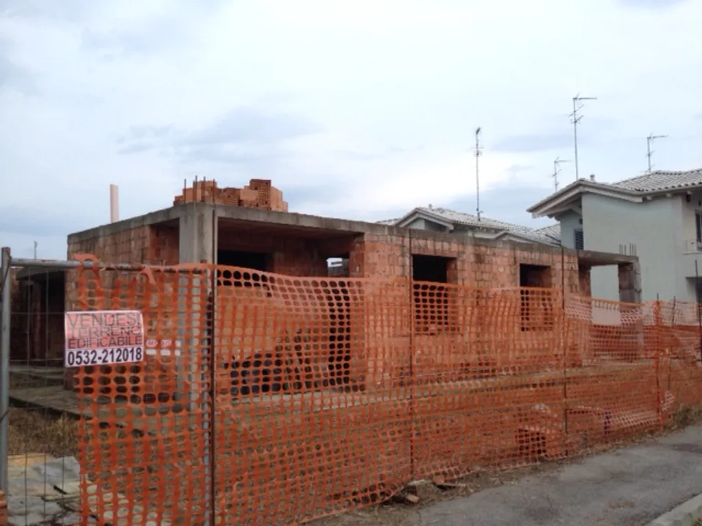 Rif. 363 - TERRENO EDIFICABILE a Lagosanto adiacente ai lidi di Comacchio, Ferrara. In zona residenziale, Ultimo lotto di circa 700 mq già edificato fino al primo solaio. Possibilità di realizzare una quadrifamiliare con scoperti esclusivi. Progetto approvato, pratica edilizia completa e metà oneri assolti. Indagini geologiche già eseguite. Attualmente eseguita fondazione e paltea in calcestruzzo armato, muratura in elevazione in porothon e solaio gettato.