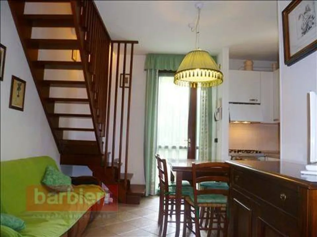 L'immobile è posto al primo piano ed è dotato di ingresso indipendente con giardinetto privato. Al primo piano troviamo il reparto giorno con angolo cottura affacciato sull'ampio terrazzo angolare abitabile, piccolo disimpegno, reparto notte con letto matrimoniale e bagno con antibagno e box doccia; al piano mansardato ulteriore letto matrimoniale e piccolo bagno di servizio.