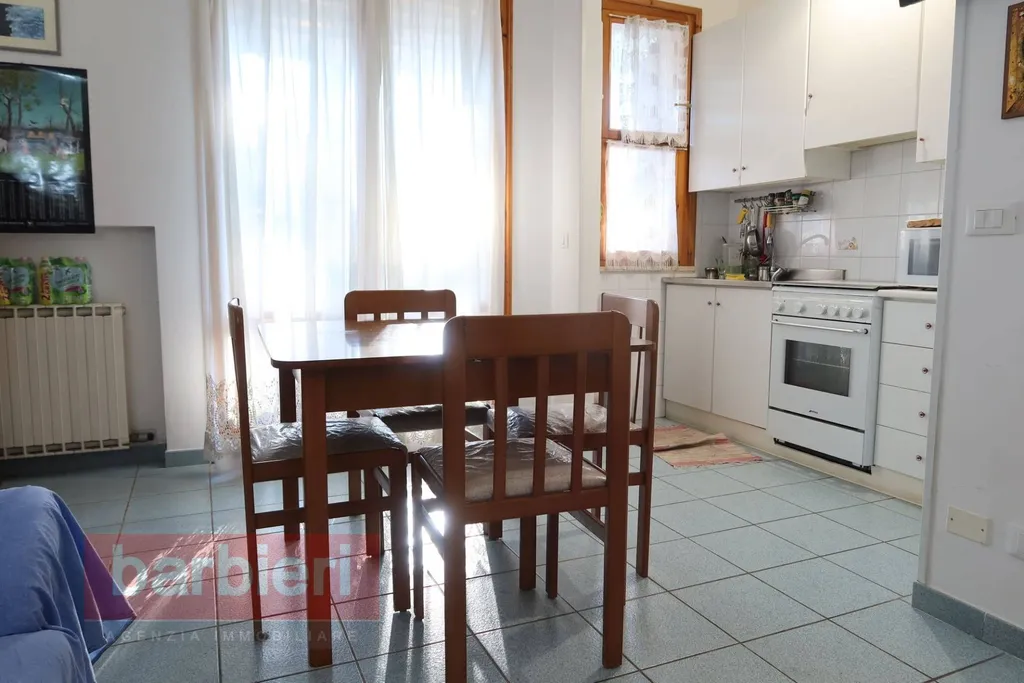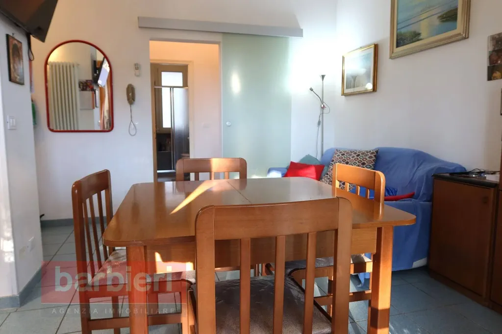 L'immobile è posto al primo piano ed è composto da un luminoso soggiorno e cucinotto con affaccio sul balcone, disimpegno, una camera da letto matrimoniale, una camera da letto doppia entrambe con affaccio sul ampio balcone e bagno finestrato.