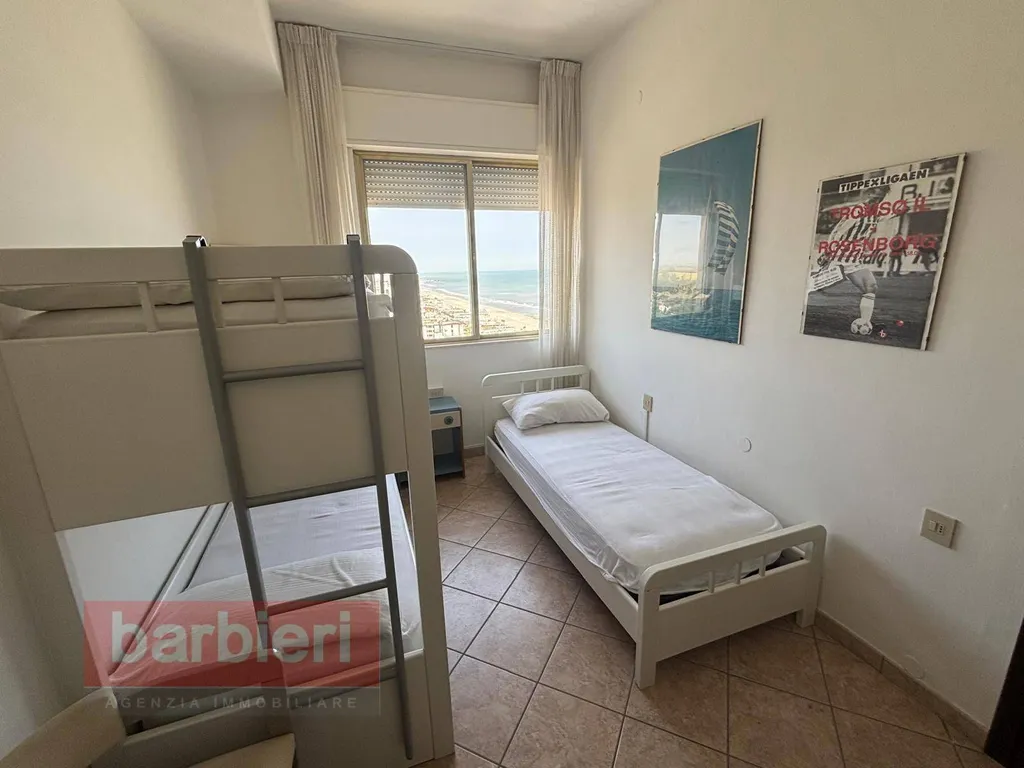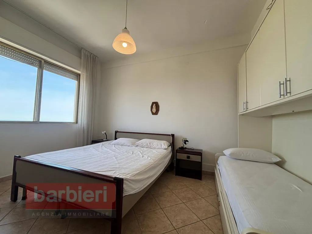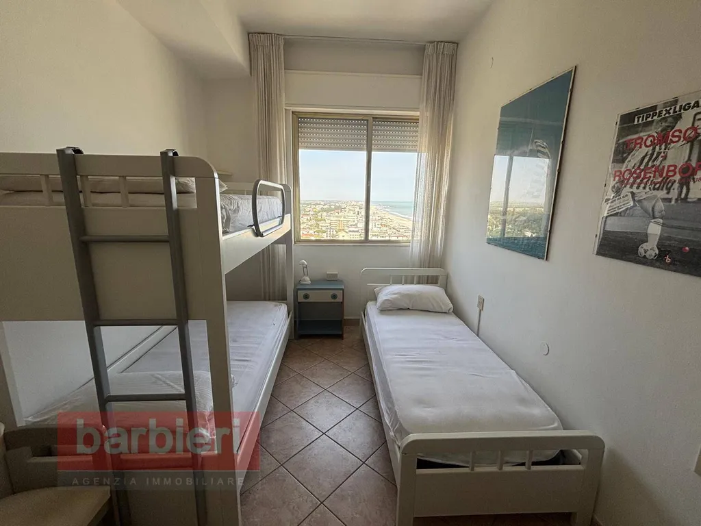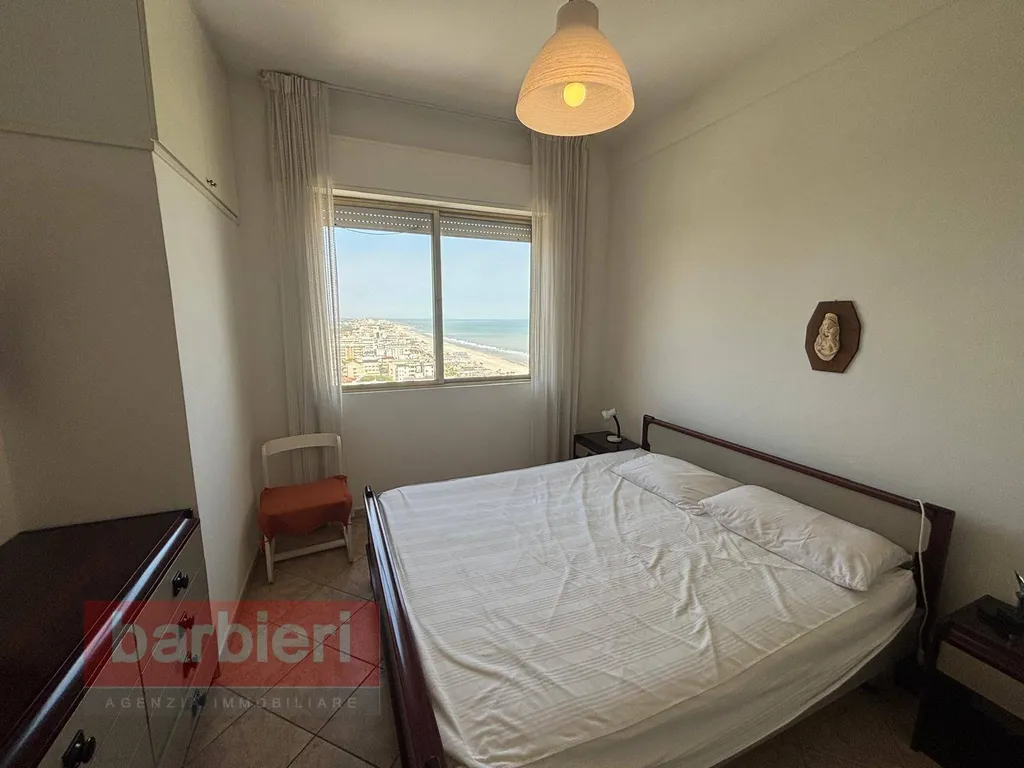 Rif. ROYAL 17° - Affittiamo a Milano Marittima, a pochissimi passi dal mare, appartamento al 17° piano con ascensore e vista mare composto da: soggiorno con angolo cottura, una camera matrimoniale e singolo, una camera con letto a castello e singolo e bagno con box doccia.